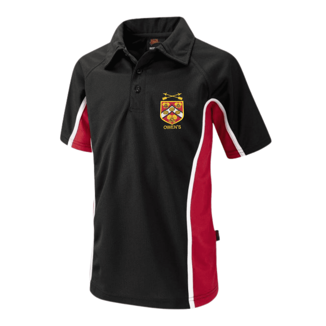 Black/red polo shirt for PE to replace the boys white PE polo and the girls fitted PE polo.