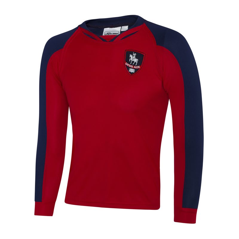 Red and navy football shirt for Salcombe Preparatory School