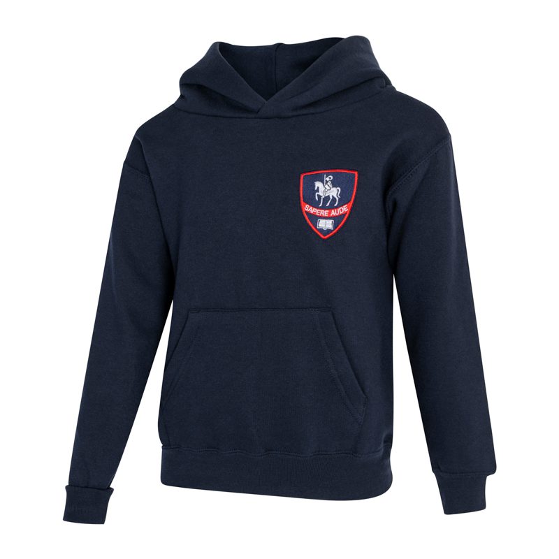 A navy hooded sweatshirt with the Salcombe Preparatory School logo